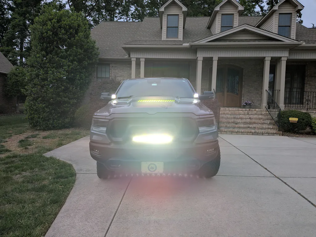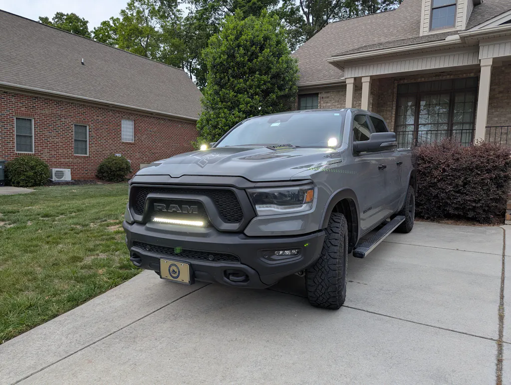 This light bar was just tested on the 2019-2024 RAM 1500 Rebel, but we don't have any pictures. Please reference pictures on this listing even though this is on the RAM RHO. It looks absolutely the same.