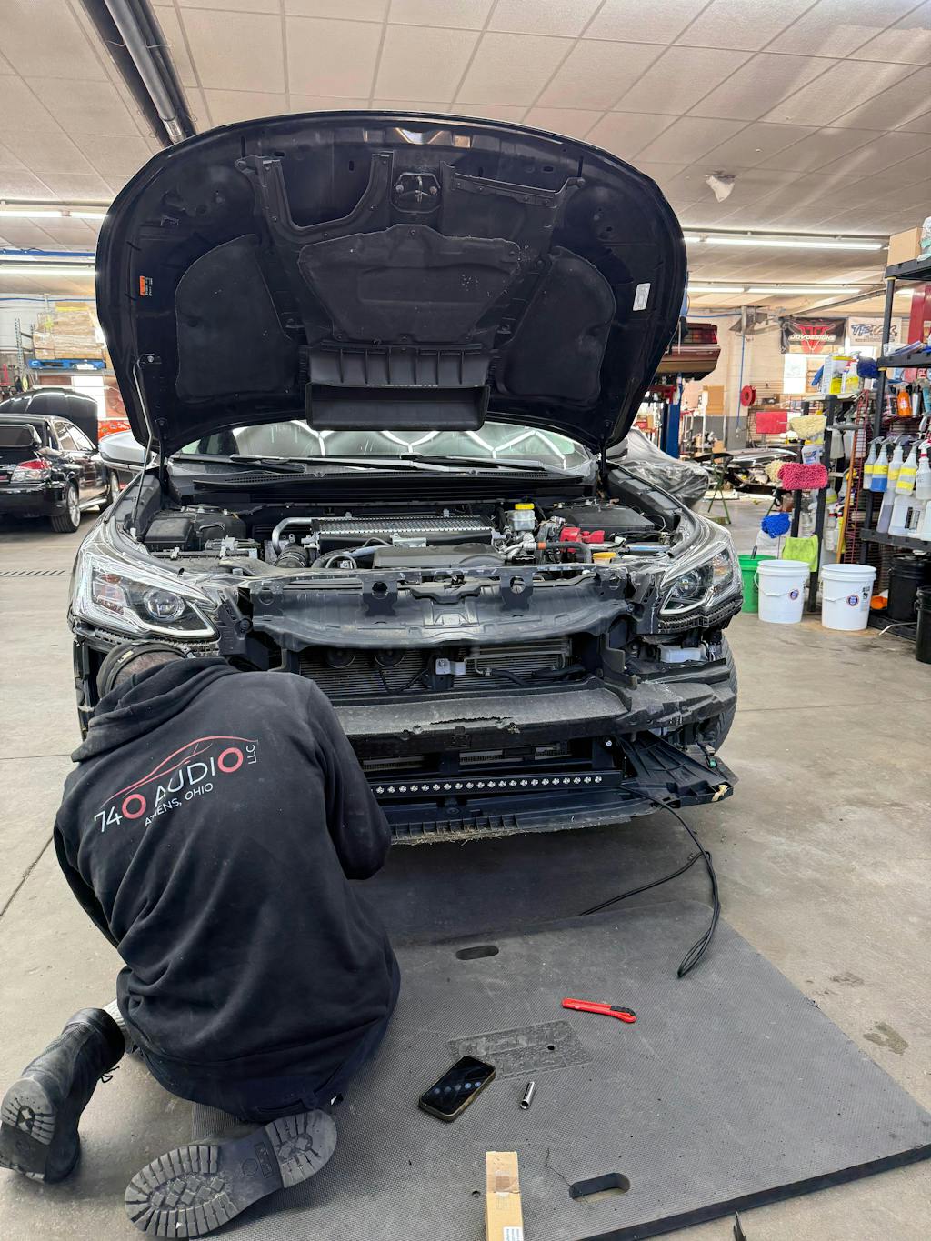 - Must remove front bumper and grille