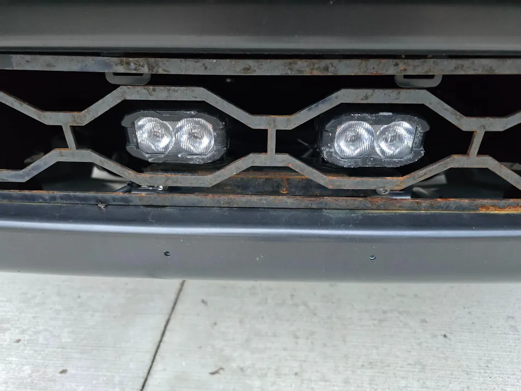 The factory Ford Raptor Gen 3 (refresh) has a large plastric openings that don't protect your lower active shitters and coolers. We designed a metal guard that is powder coated black and has a rugged design. It replaces the factory plastic trim in your lower bumper to add some protection and even light up the night. You can add two (2) LED light pods to make your Ford Raptor Gen 3 (refresh) truly one of a kind.
